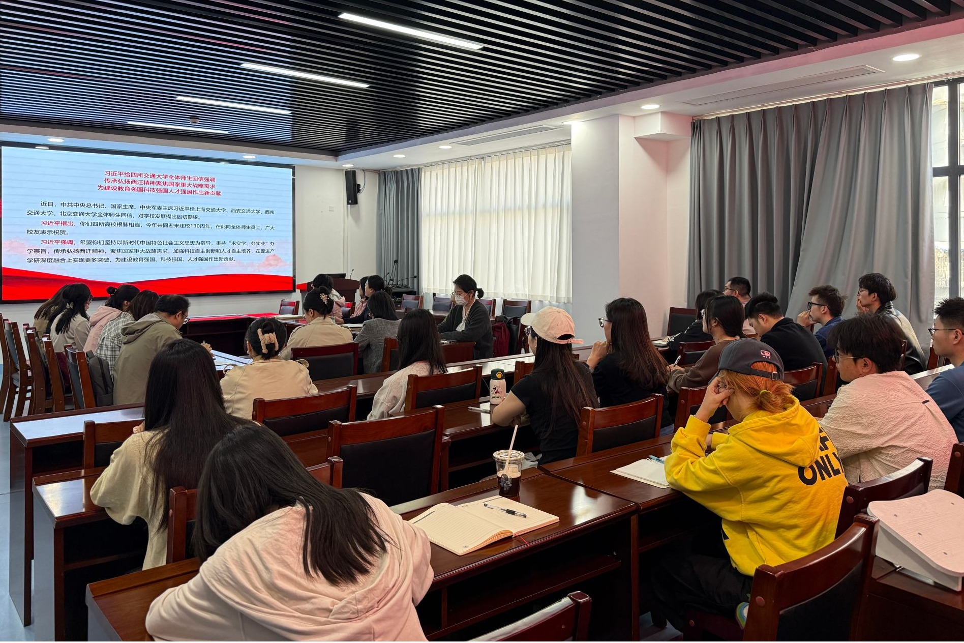会议伊始,张书记领学习近平总书记给四所交通大学全体师生的重要回信精神。会议指出,总书记的回信充分体现了以习近平同志为核心的党中央对交通大学血脉高校的高度重视与殷切关怀,为学校办学治校、学院党建引领事业高质量发展指明了前进方向、提供了根本遵循。全院师生党支部要提高政治站位、强化使命担当,深刻领会“求实学、务实业”重要要求,传承弘扬西迁精神,紧扣国家重大战略需求,在立德树人、科技创新、人才培养等各项工作中务求实效、勇担使命,切实把回信精神转化为推动学院事业发展的强大动力与实际成效。