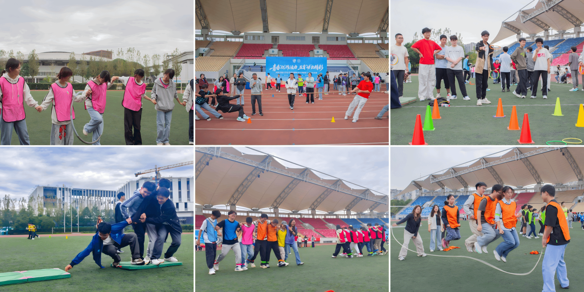 趣味运动会上,各支参赛队伍早已摩拳擦掌、活力满格,让现场的竞技氛围瞬间拉满,师生们都迫不及待要在赛场上一展风采。七个项目各有亮点,“笑点与燃点”齐飞。“百发百中—套圈”前,师生们紧盯目标、屏住呼吸,套中的瞬间欢呼雀跃;“同心协力—一圈到底”考验团队默契,队员们手拉手、肩并肩,配合着让圆环快速传递;“稳中求进—垫步竞渡”是平衡与速度的较量,选手们脚步虽缓却步步坚定;“步调一致—长杆跑”中,队员们整齐的步伐奏响了集体协作的乐章;“并肩前行—八人九足”最是热闹,绑着腿的队员们喊着“一二一”的口号,互相搀扶着调整节奏,朝着终点共同迈进;“绳彩飞扬—长绳跳”中,绳子落地的“啪嗒”声与笑声、欢呼声交织。最后的“众志成城—拔河”更是将氛围推向顶点,双方队员紧握长绳、身体后倾,场边师生加油声震耳欲聋,赢的队伍相拥庆祝,输的队伍也笑着握手,大家都明白,比起输赢,共同拼搏的过程才更珍贵。