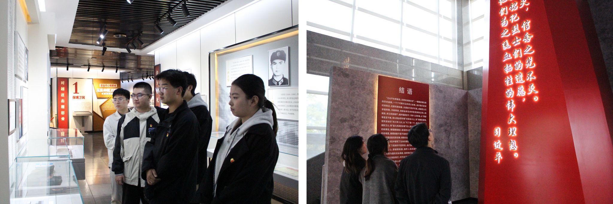 在“强军先锋·无畏逆行”第四展厅,支部成员驻足良久、感触颇深。展厅中承载的英烈精神,是伟大抗战精神在新时代的赓续传承,那份为国家安宁挺身而出的担当、为民族复兴矢志奋斗的执着,让每一位同志深受震撼与洗礼。党支部书记魏浩同志结合英烈事迹与专业特色现场勉励:“英烈们用生命践行初心使命,作为化院学子,我们要以英烈为榜样,深耕化学专业领域,将对先烈的崇敬之情转化为科技报国的实际行动,让化学分子的键能持续汇聚成民族复兴的动能。”