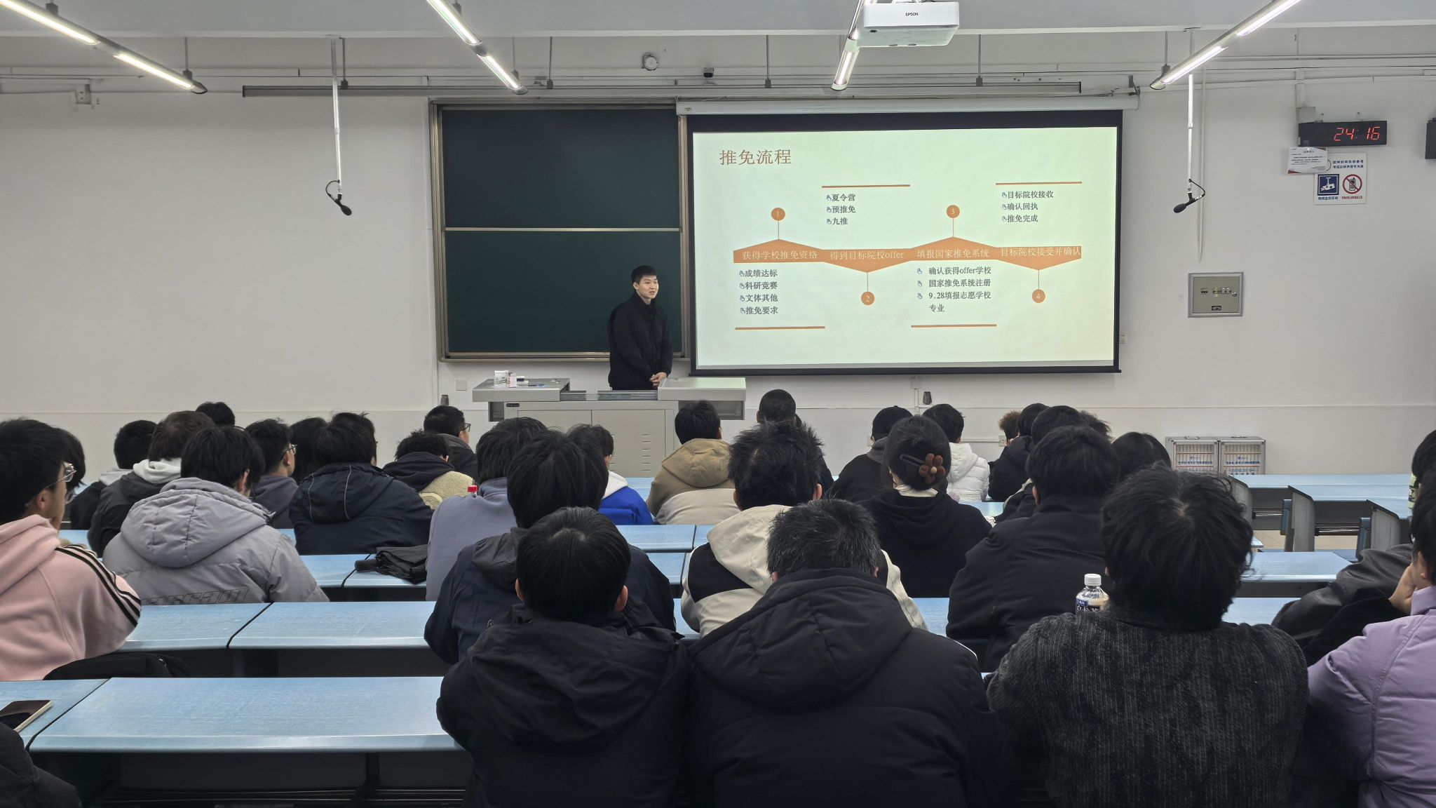 赵高建,高分子2021-01班本科生,中共预备党员,推免至中国科学技术大学,曾获中国国际大学生创新大赛(2023)铜奖,全国大学生生命科学竞赛省级二等奖等。赵同学就自我提升、科研探索等方面,强调成就优异学业基础的同时,参与科研项目,发掘内在潜能,塑造核心竞争力。学长还分享了精准选定心仪高校、精心准备申请资料及展示个人特质的方式,以及如何在面试环节中脱颖而出等经验干货。