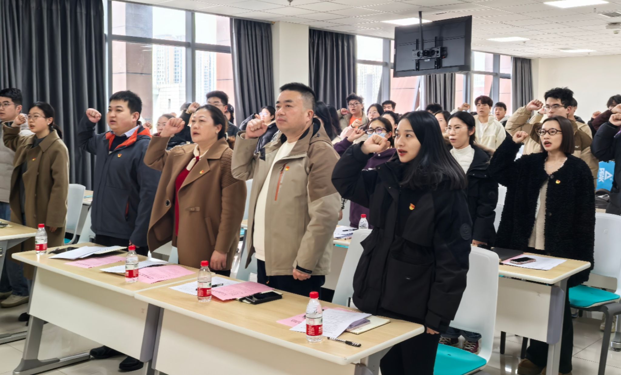 会上,全体党员重温入党誓词,李倪洲同志领誓。星火相传聚力量,铮铮誓言铸信念,化学及数学学院本科生党支部共建联学正式启动。
