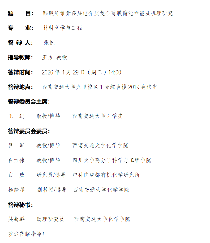 【博士答辩】王勇教授指导的博士研究生张帆学位论文答辩公告