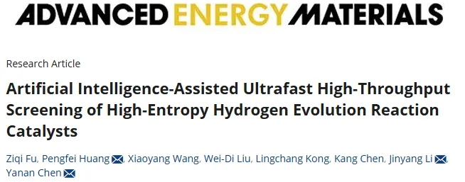 的研究团队在国际能源材料领域顶级期刊《Advanced Energy Materials》(影响因子24.4)发表题为“Artificial Intelligence-Assisted Ultrafast High-Throughput Screening of High-Entropy Hydrogen Evolution Reaction Catalysts”(人工智能辅助的超高通量筛选高熵析氢反应催化剂)的研究论文,哆啦AV梦