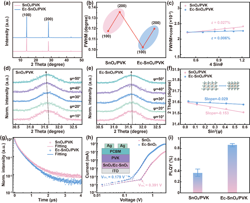 图4. 钙钛矿薄膜应力和非辐射复合分析。