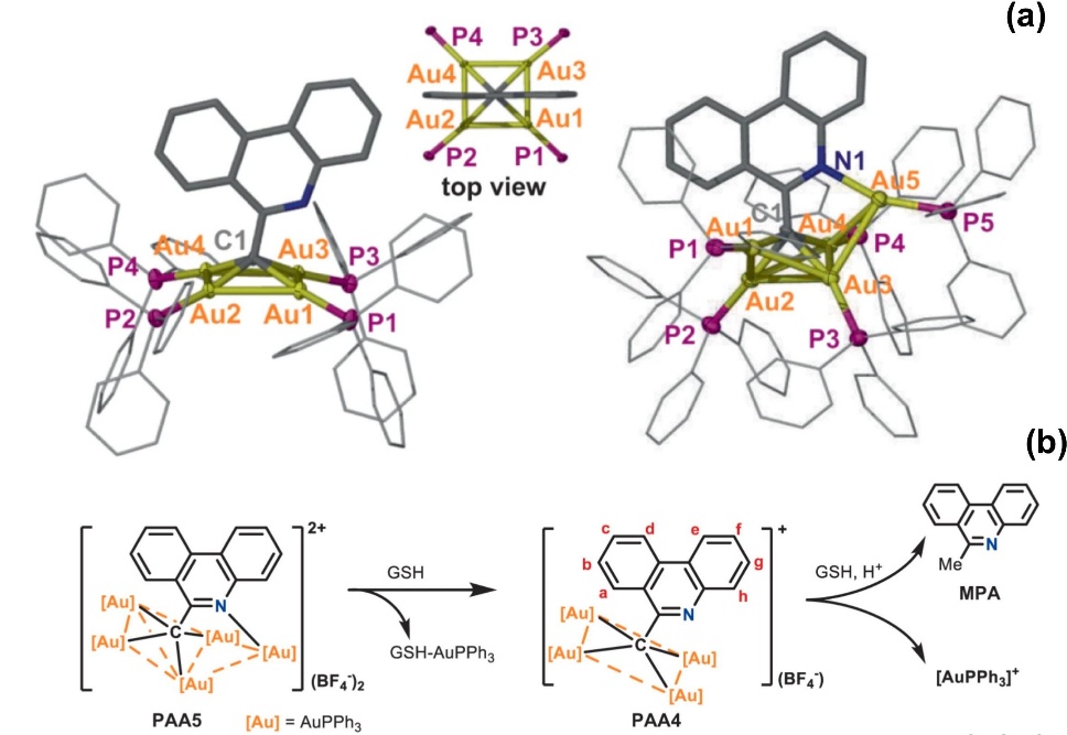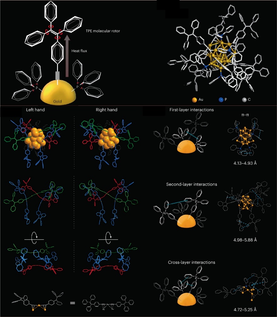 图4. 四苯乙烯功能化的Au₂₀团簇应用于光热诊疗;其四苯乙烯单元作为‘分子马达’,通过耗散光热能提升团簇的结构稳定性。