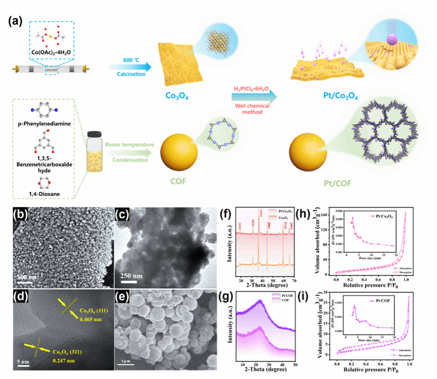 在这项工作中,作者利用一种简单可控的低温固液反应 “铂化”策略,成功地将 Ptδ+掺杂到了具有的富电子特性的载体中。利用具有富电子位点的无机或有机化合物(Co3O4、COF、NiO、CeO2 等)作为支撑基底,合成了一系列催化剂(Pt/X),并探索了它们的电催化性能。在这些 Pt/X 催化剂中, Pt/Co3O4 和 Pt/COF 表现出出色的催化活性。得益于界面 Ptδ+/富电子位点的协同效应,超低 Ptδ+ 负载的 Pt/Co3O4 和 Pt/COF 分别显示出 21 mV 和 23 mV 的超小过电位,并且在 1 M KOH 中,电流密度为 10 mA cm-2 时具有极佳的稳定性。令人惊讶的是,铂含量仅为 0.63 wt% 的 Pt/Co3O4 在 500 mV 的过电位下可提供 348 mA cm-2 的超高工业相关电流密度,是铂含量为 20 wt% 的商用 Pt/C 的 3.22 倍,实现了真正意义上的低铂负载和高铂利用率。密度泛函理论(DFT)计算结果表明,Pt/ Co3O4和Pt/COF中的Ptδ+/富电子位点优化了氢吸附的自由能,提高了催化剂在碱性介质中的HER性能。这项工作为高效电催化剂的设计和开发提供了一条新的途径。