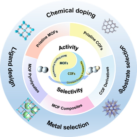 图1.应用于2e- ORR电催化的有机框架材料及调控策略。