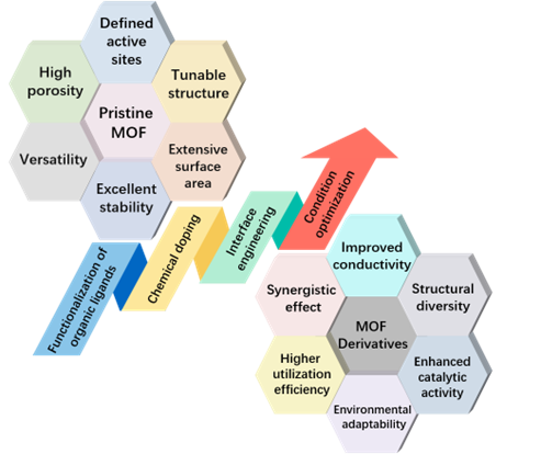 图2. 原始MOFs和MOF衍生物在2e- ORR反应中的优势和修饰方法。