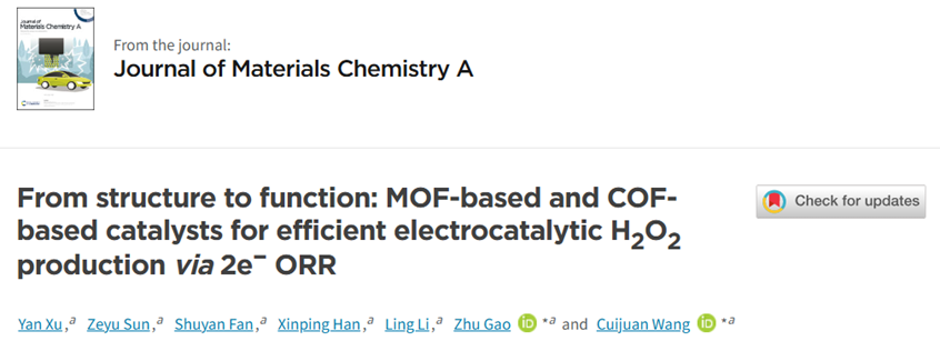 该综述以“From structure to function: MOF-based and COF-based catalysts for efficient electrocatalytic H2O2 production via 2e− ORR” 为题发表在材料类国际顶级期刊《Journal of Materials Chemistry A》(影响因子:10.7)。其中,哆啦AV梦