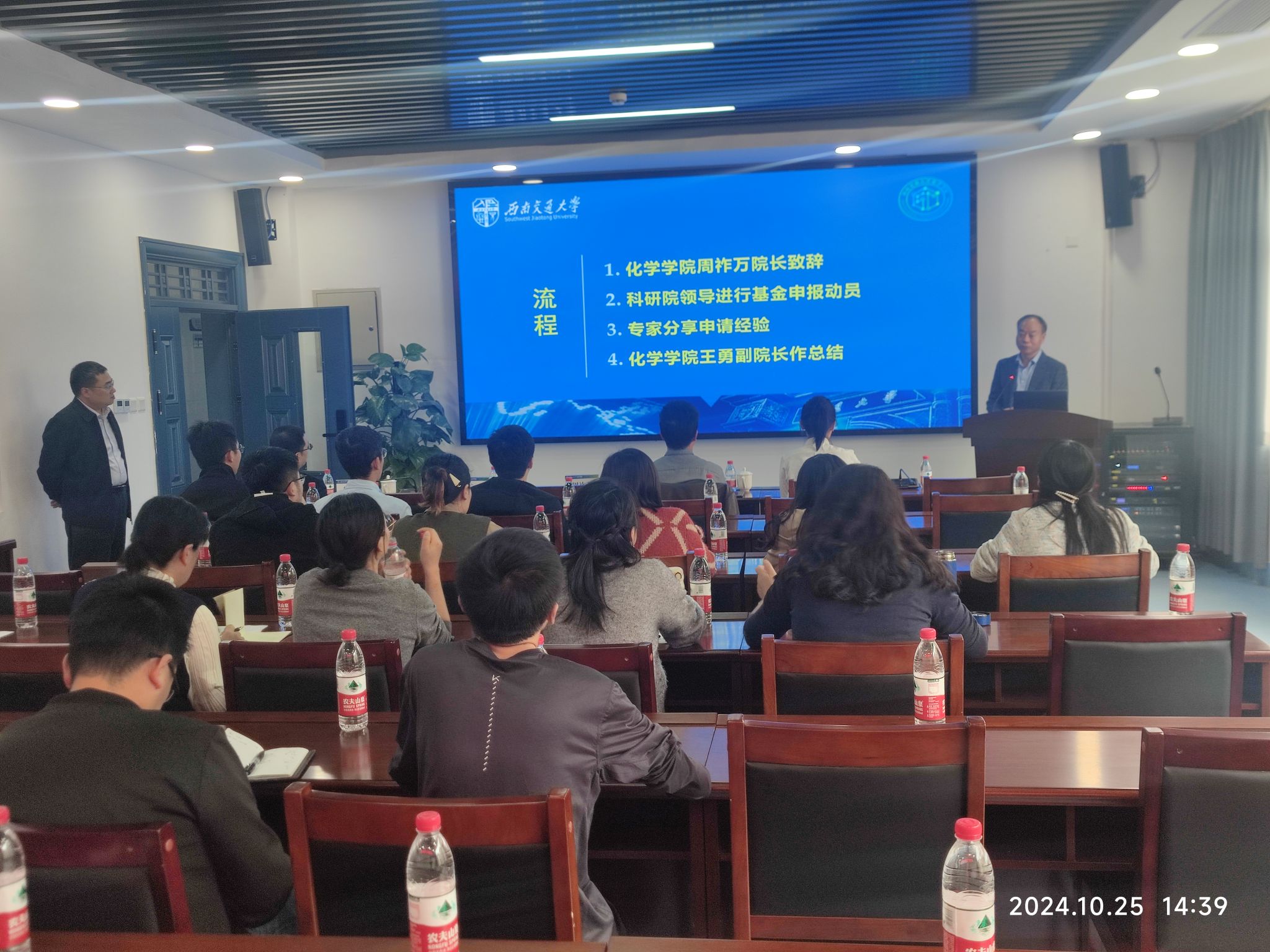 王勇副院长与彭羽教授等人还详细地向各位老师分享了申请经验,学院周祚万院长和王勇副院长出席会议。