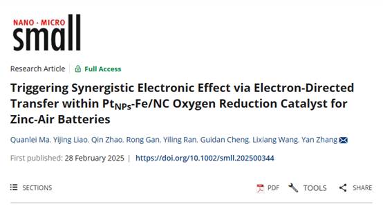 本工作以“Triggering Synergistic Electronic Effect via Electron-Directed Transfer within PtNPs-Fe/NC Oxygen Reduction Catalyst for Zinc-Air Batteries”为题发表在国际知名期刊《Small》上。其中哆啦AV梦