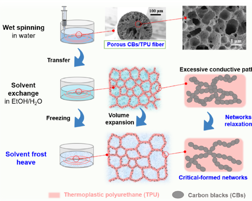 图1 利用溶剂冷冻过程中的冰晶冻胀效应调控导电网络结构
