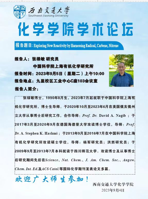 报告人:张禄敏 研究员 中国科学院上海有机化学研究所