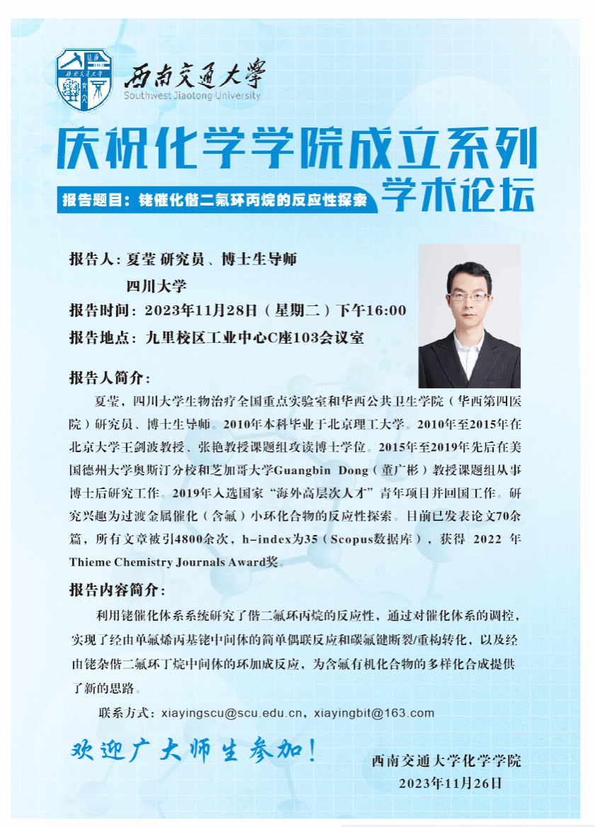 报告题目:铑催化偕二氟环丙烷的反应性探索
