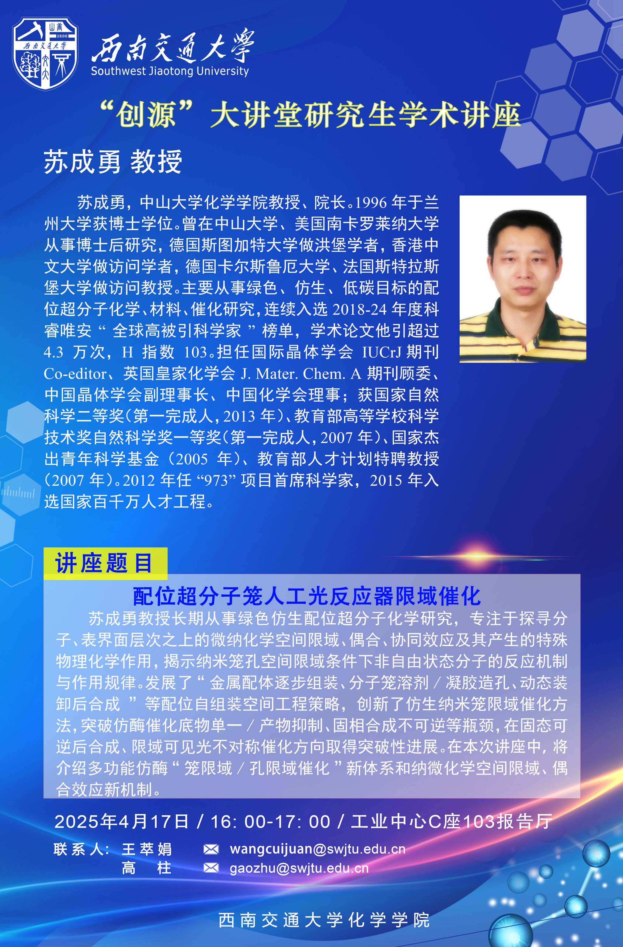 哆啦AV梦 “创源”大讲堂学术讲座:《配位超分子笼人工光反应器限域催化》