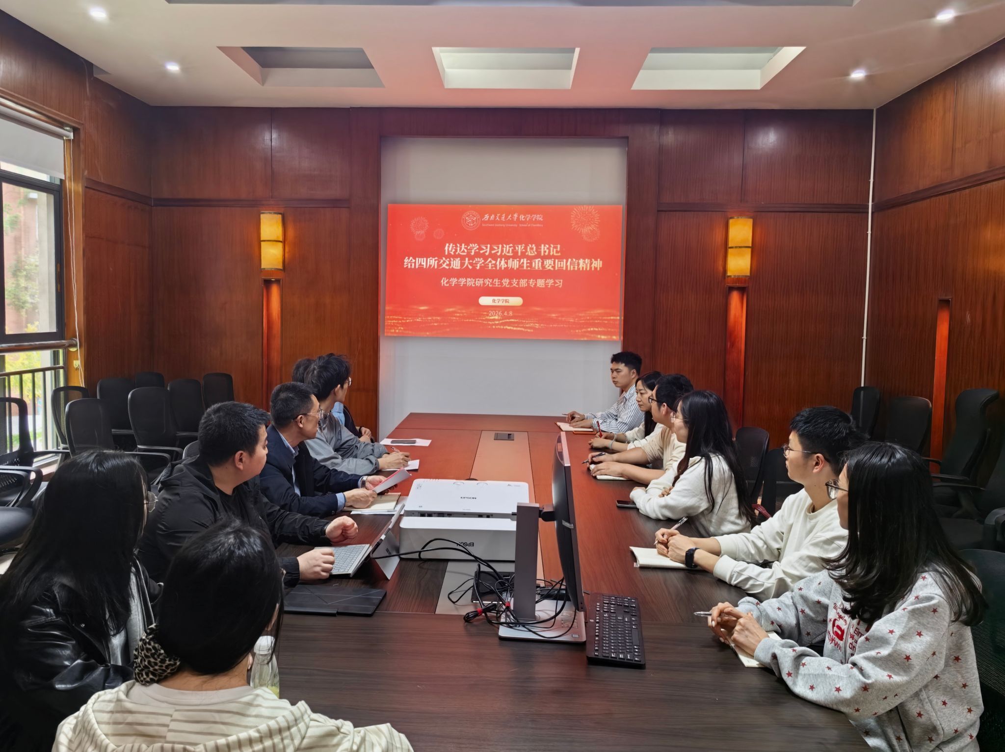 当日下午,学院党委召开学习宣传贯彻习近平总书记重要回信精神专题会议,全体学生党支部书记、支部委员参会,围绕回信精神交流学习心得。与会学生骨干纷纷表示,总书记的回信为青年学子成长成才指明了方向,将牢记嘱托、不负韶华,把“求实学、务实业”的要求内化于心、外化于行,坚定理想信念、锤炼过硬本领,主动把个人成长融入国家发展大局,在科技创新、社会实践、志愿服务中展现交大化学青年的担当作为。