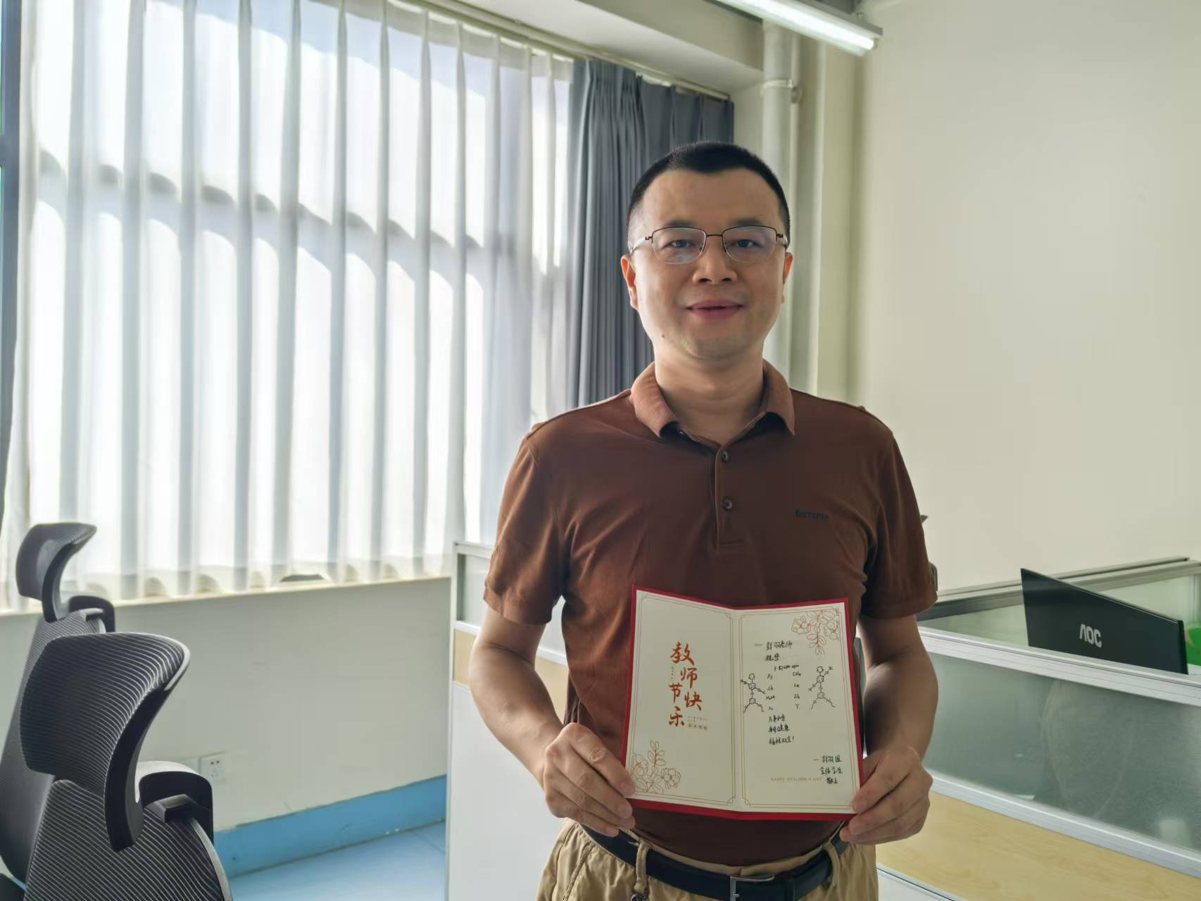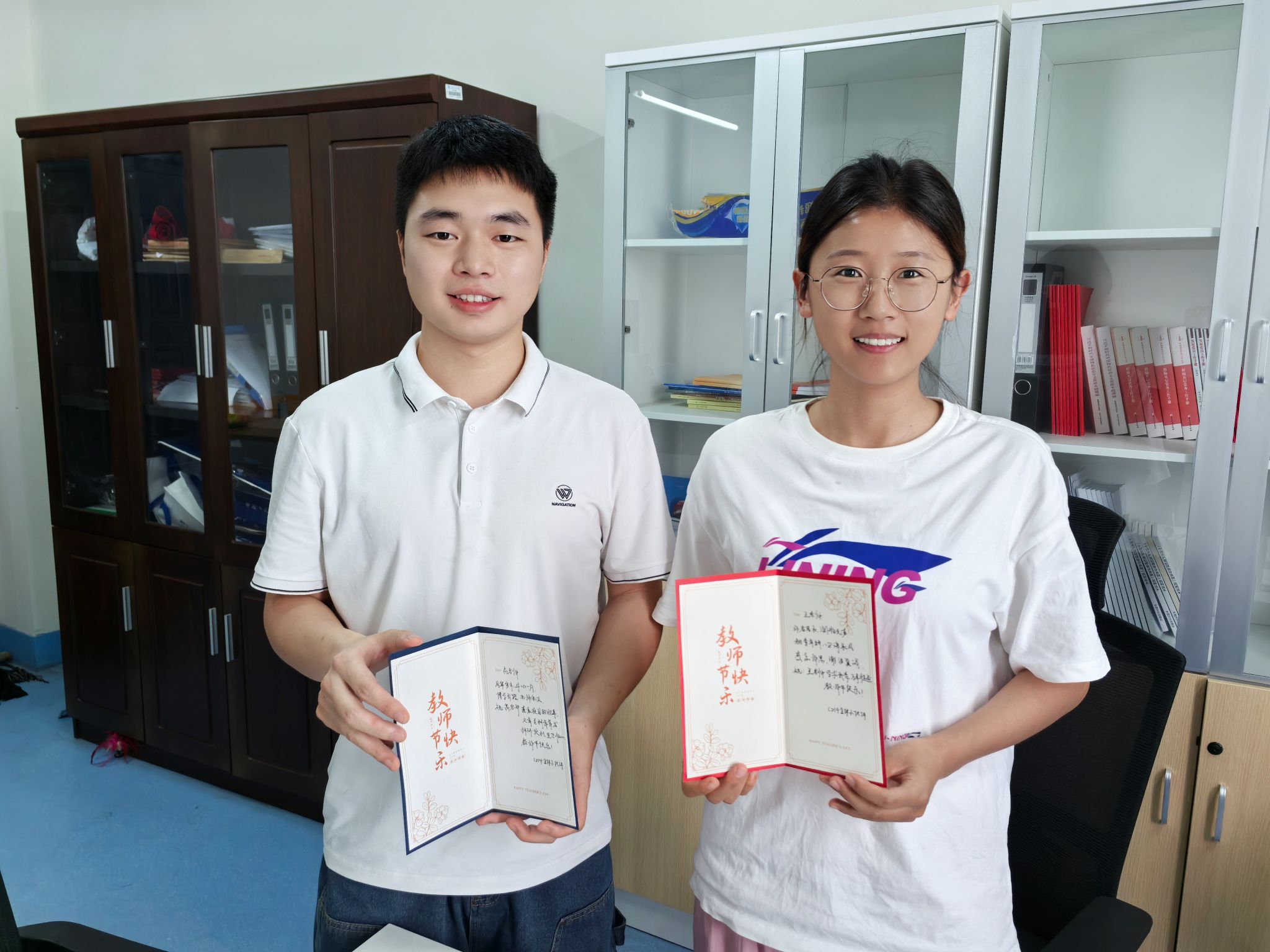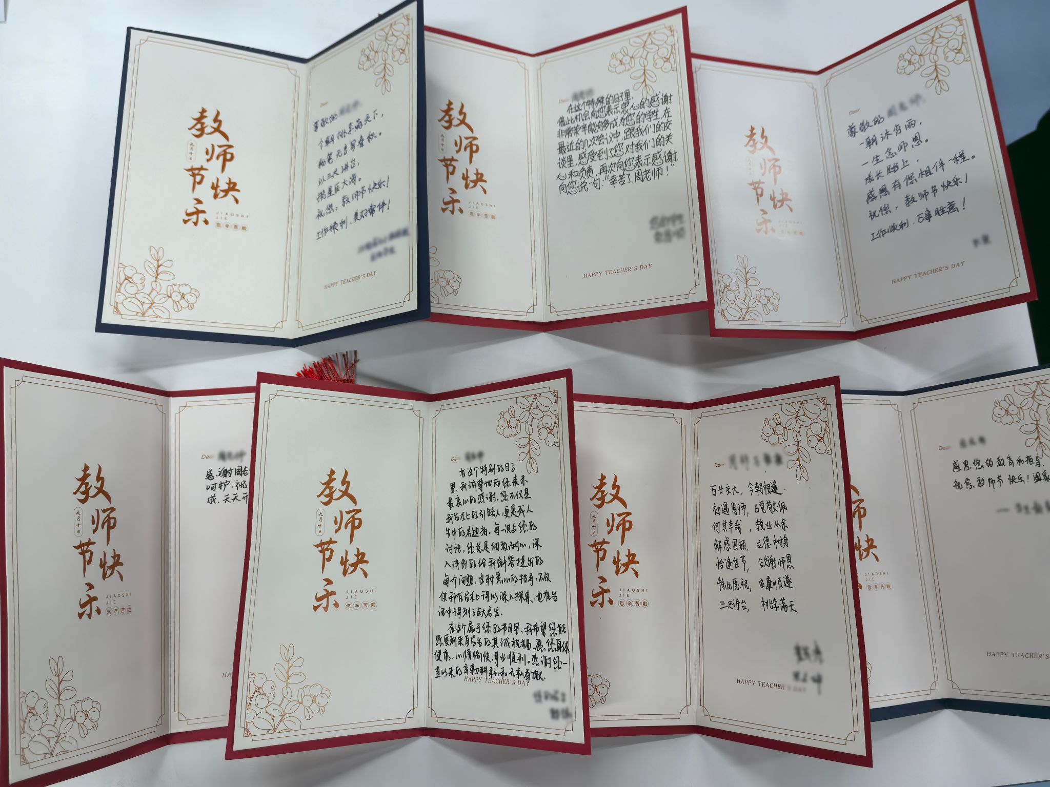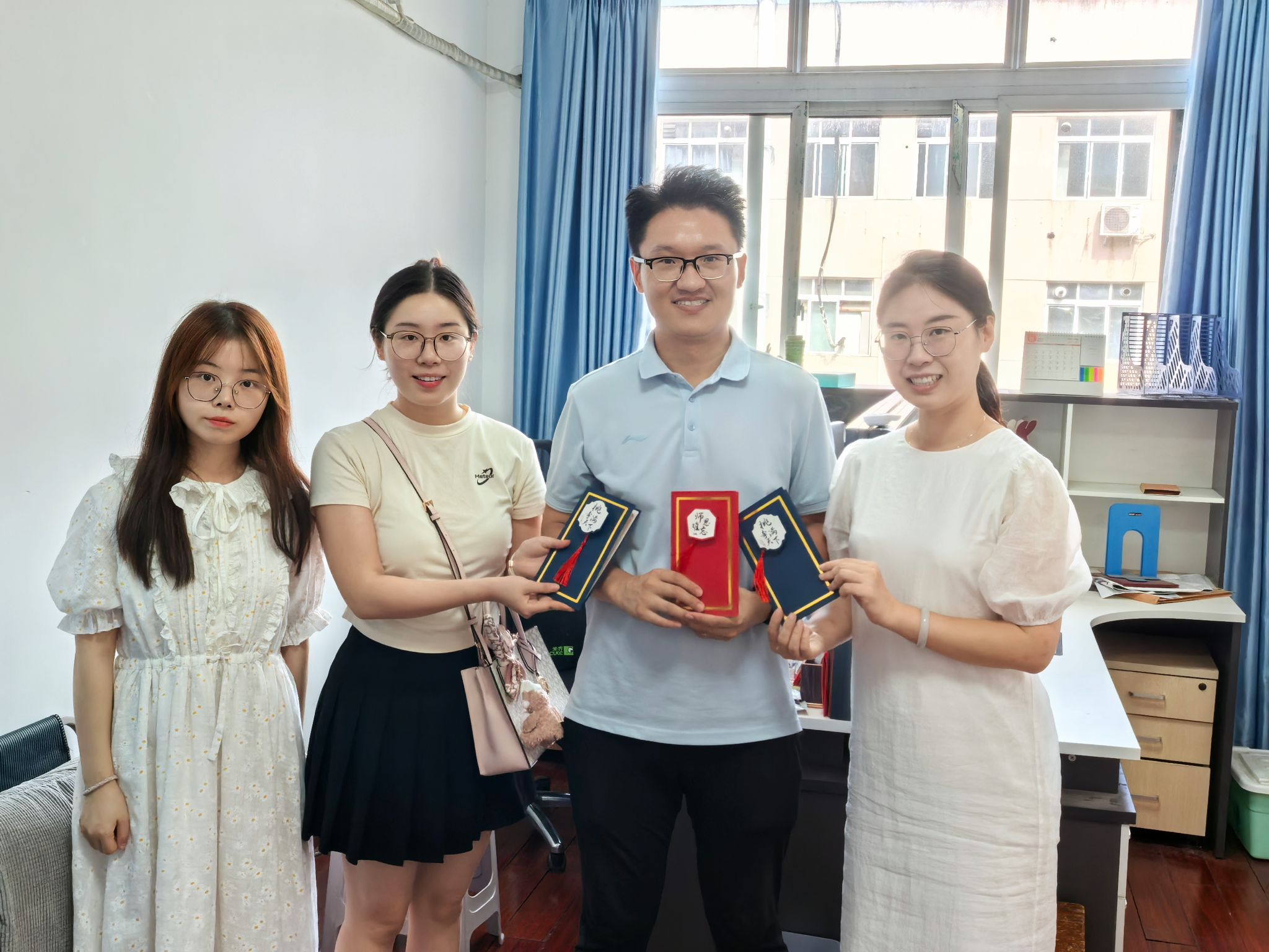 9月10日当天,学院组织员和党员服务队充当“祝福快递”,将卡片送至对应老师手中。各位老师收到贺卡都表现出欣慰和开心之情,师生情谊也在一张张卡片中传递。