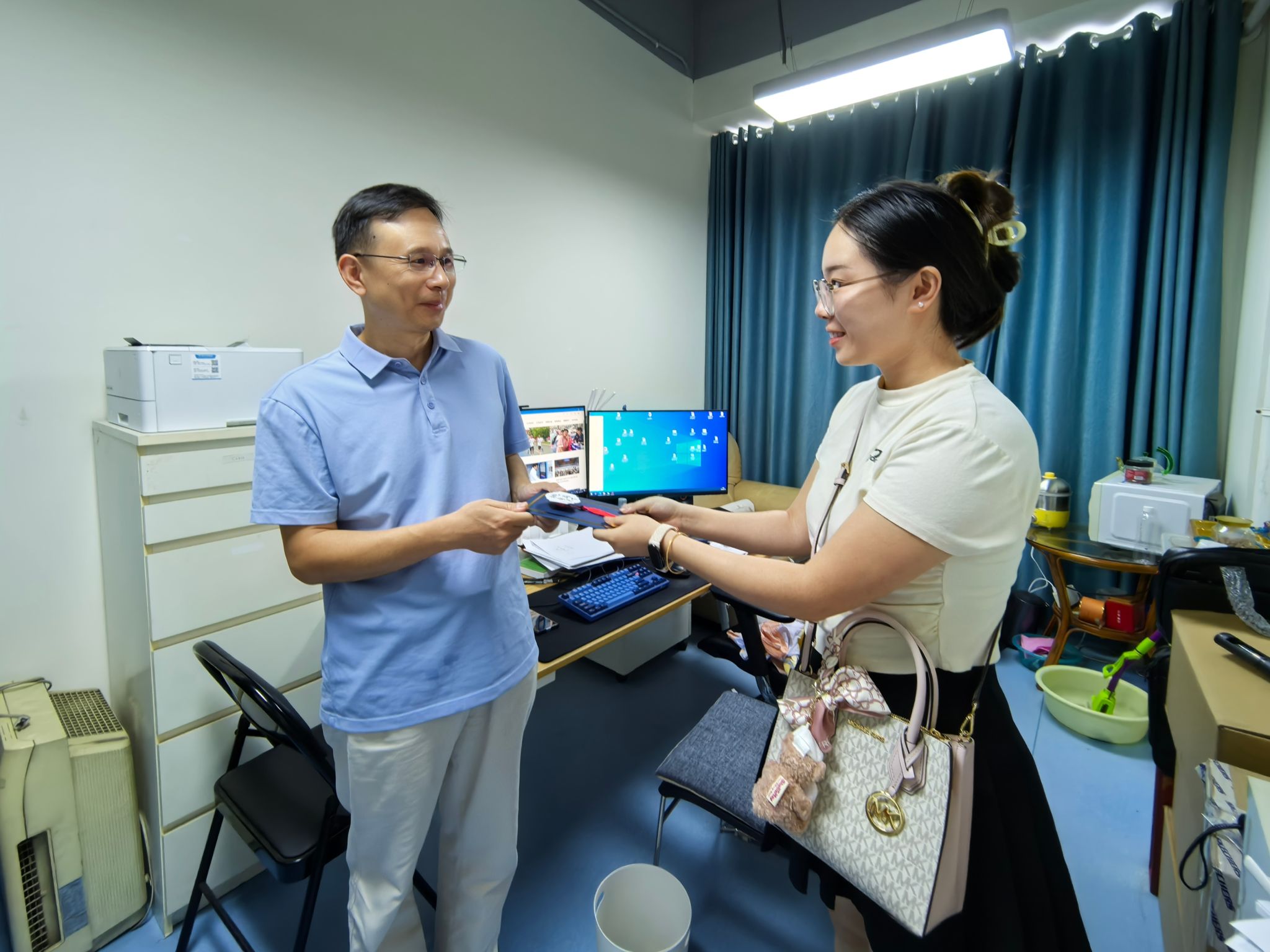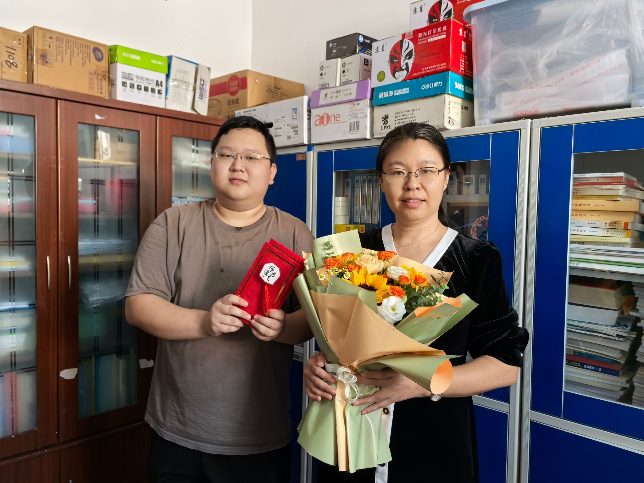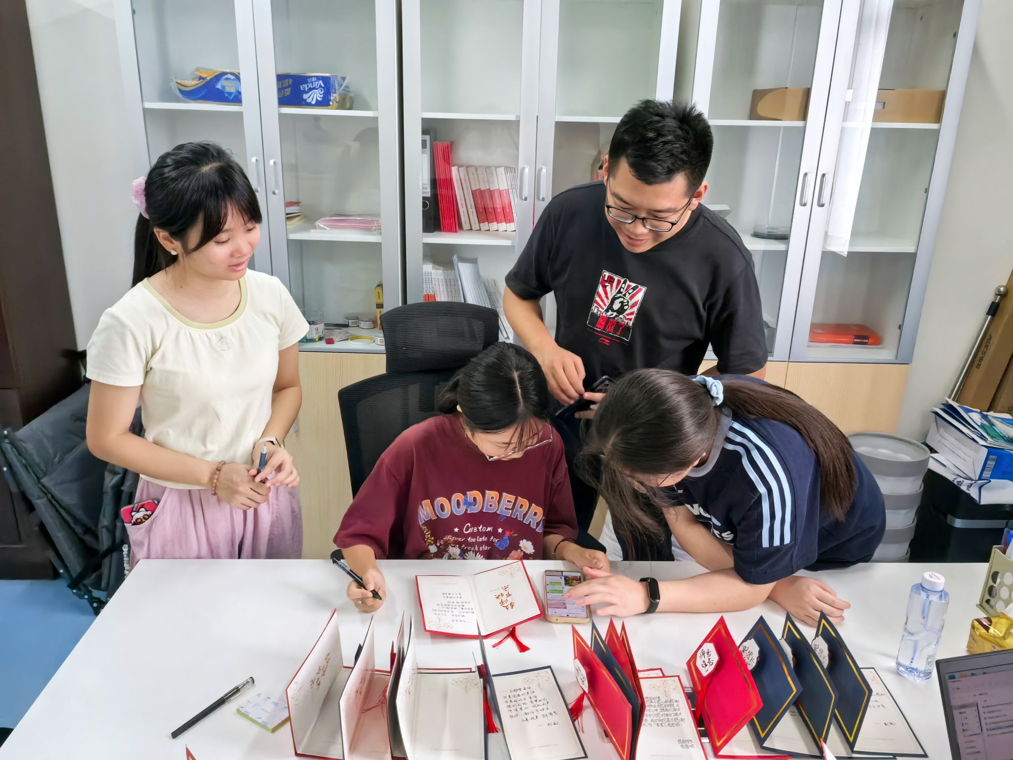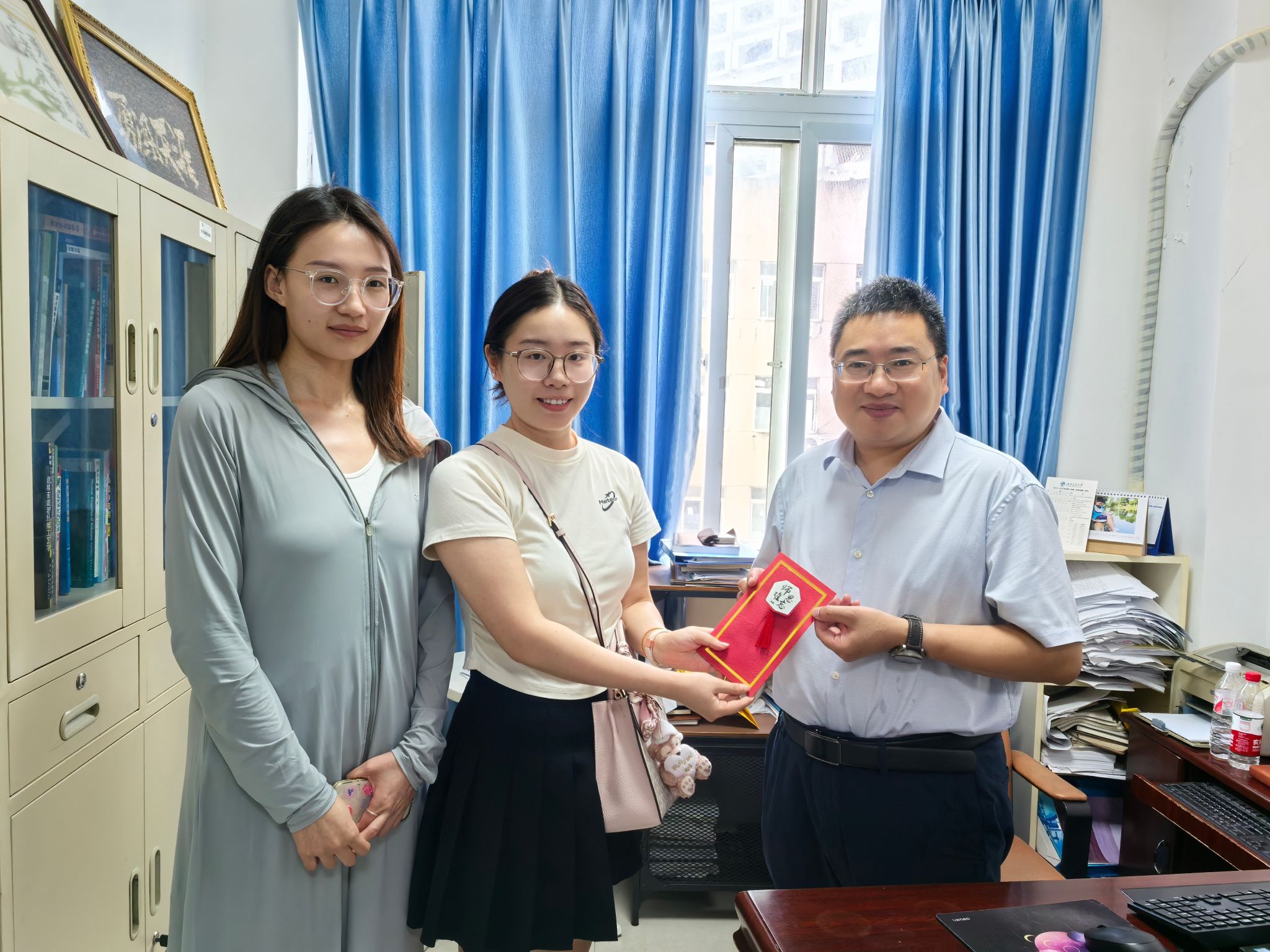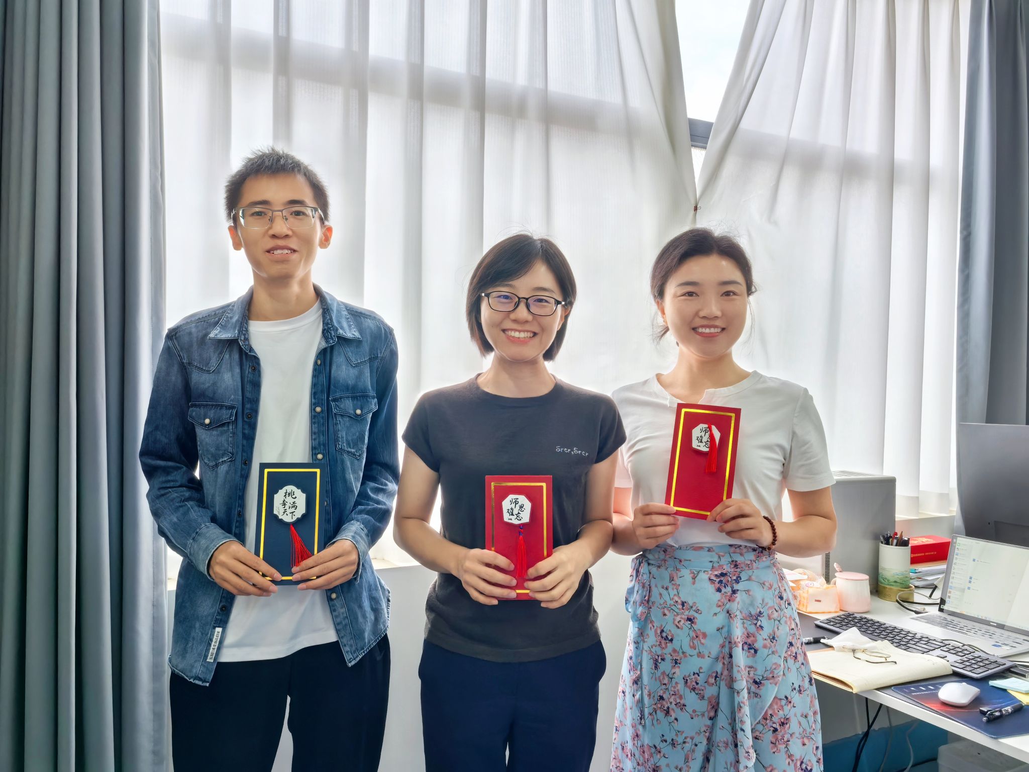 9月10日当天,学院组织员和党员服务队充当“祝福快递”,将卡片送至对应老师手中。各位老师收到贺卡都表现出欣慰和开心之情,师生情谊也在一张张卡片中传递。
