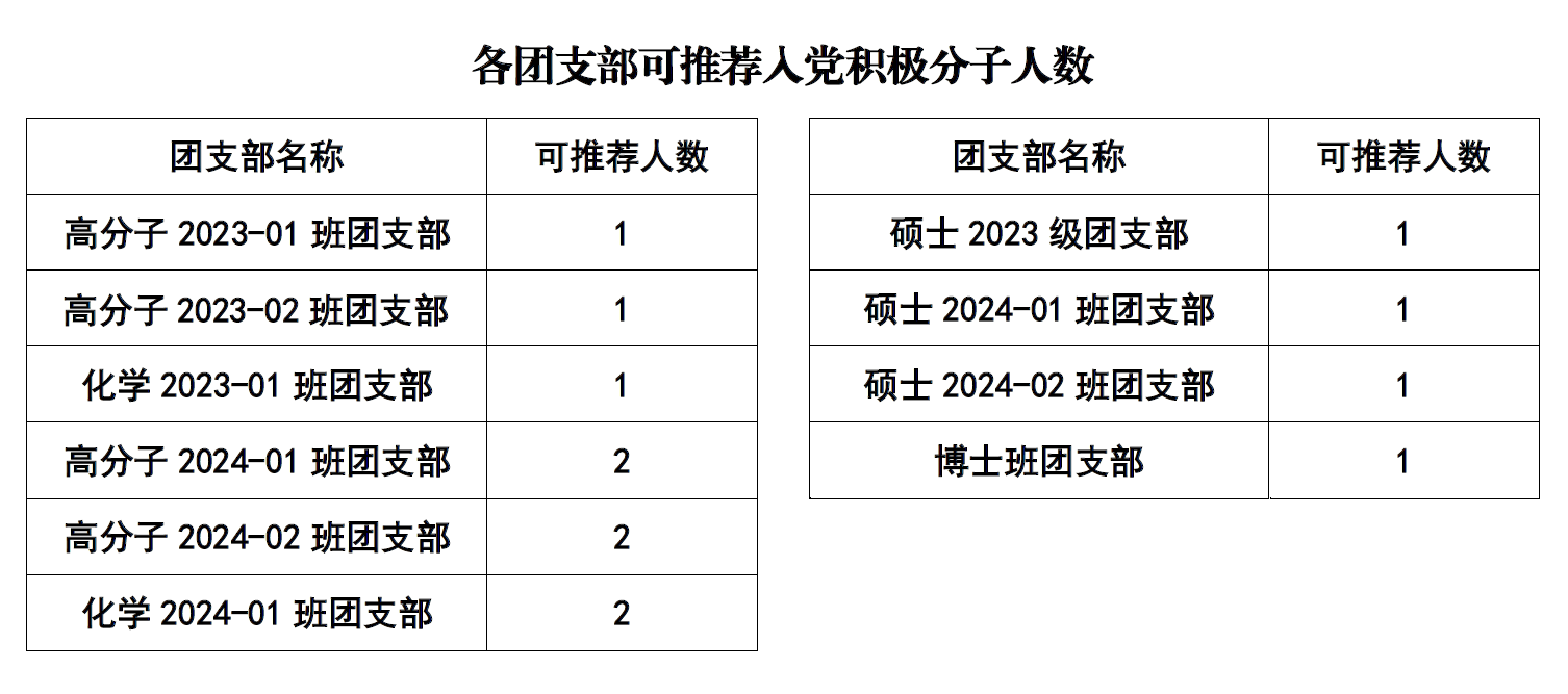特别说明:各支部可推荐人数中已包含可推荐非团员人数,即若支部可推荐人数为2人,至多可推荐2人(含非团员)。