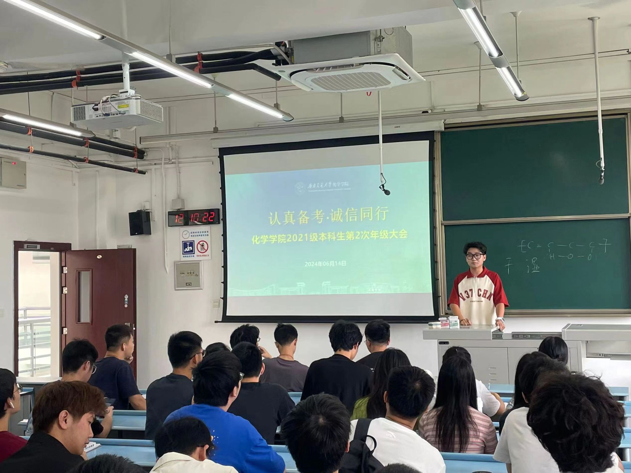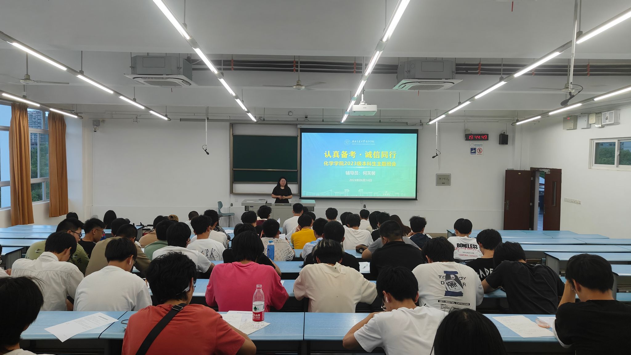 辅导员何芙馨、魏浩老师为学院本科2021、2022、2023级学生召开“认真备考·诚信同行”主题班会。