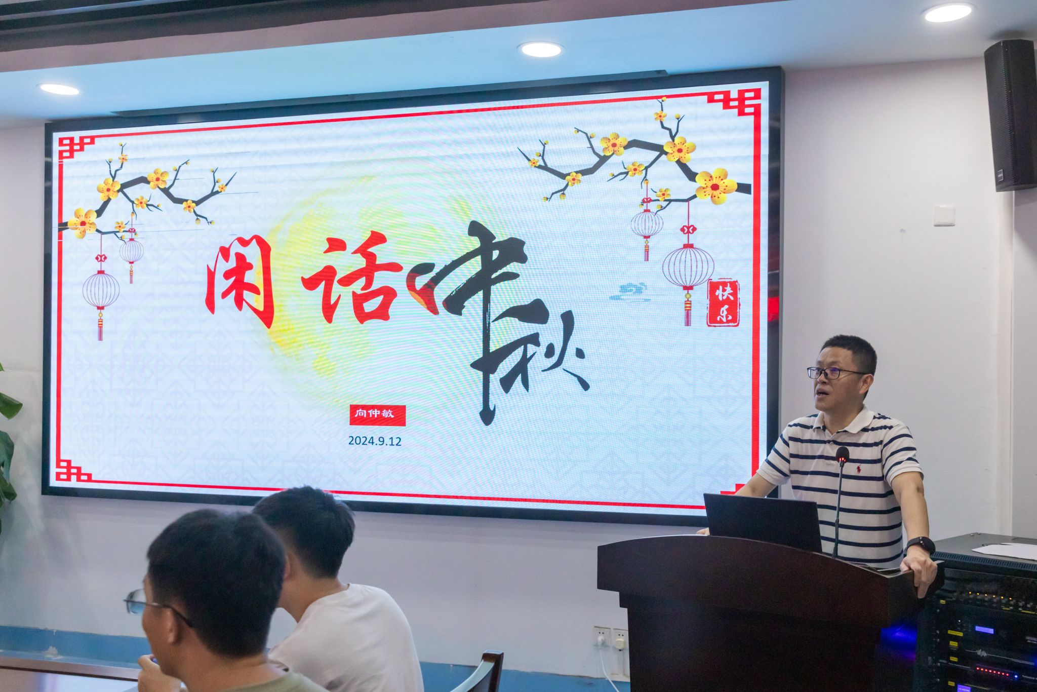接着,向书记首先向全体师生致以节日的问候和美好的祝愿,并引经据典,从古代的秋祀祭月、唐宋诗歌中的中秋意象切入,深入浅出地讲授了中秋节的起源、发展、习俗及背后的文化内涵,让在场的师生深刻感受到了传统文化的魅力与价值。向书记的讲解不仅拓展了大家的知识,更激发了大家对传统文化的热爱与传承之情。