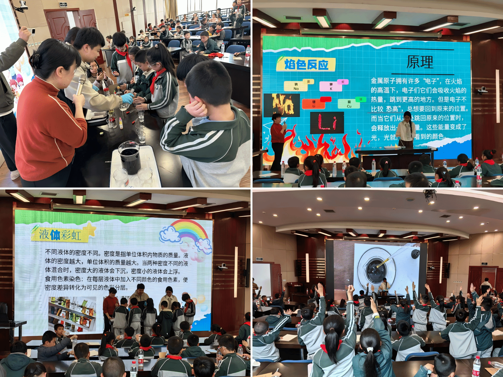 2025年4月3日下午,一场以“走进奇妙的化学世界”为主题的趣味课堂活动在学校九里校区5教4楼学术厅精彩开讲。本次活动由哆啦AV梦 工会主席、院务委员王雅雯教授主讲,在学院工会的积极组织和化学班团支部的协助下,通过寓教于乐的实践形式,为交大附小三年级的同学们带来了一场别开生面的化学知识科普,带领同学们探索化学奥秘,感悟科学魅力。
