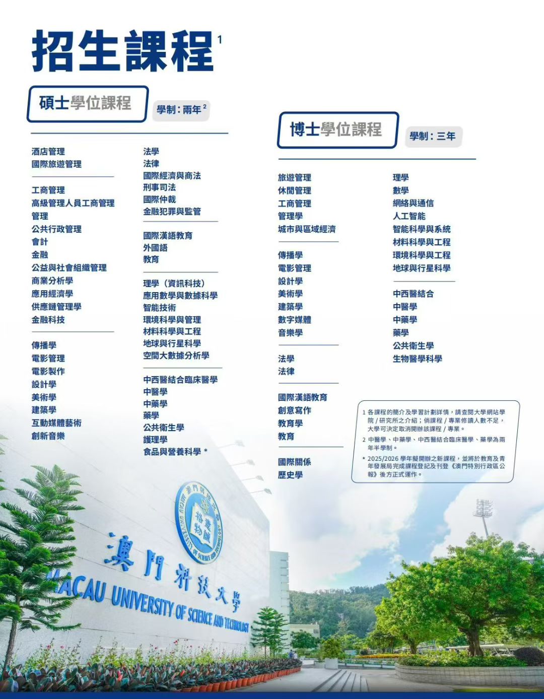 🇲🇴澳门科技大学硕士、博士,今日开始报名,第一轮申请9月10日-11月19日,各个专业滚动制录取,额满截止!